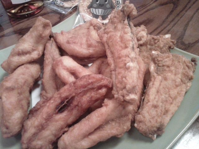 トラフグの頭のから揚げと、小振りのショウサイフグのから揚げです。無論美味です!