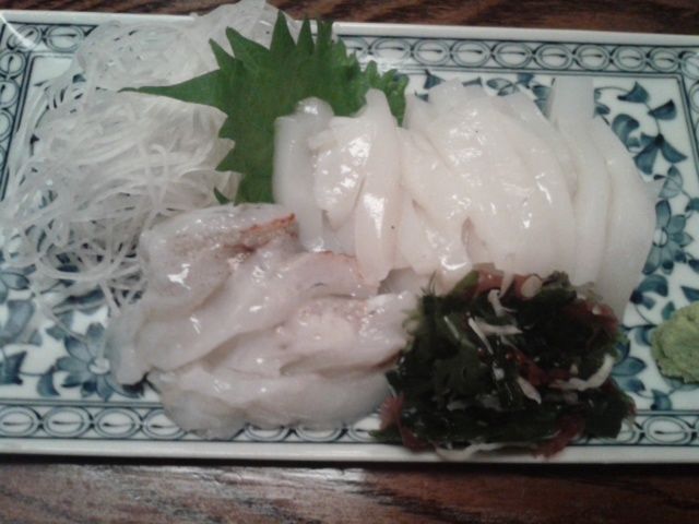 シリヤケイカはお刺身になりました。船中1杯、山下さんが釣りました。