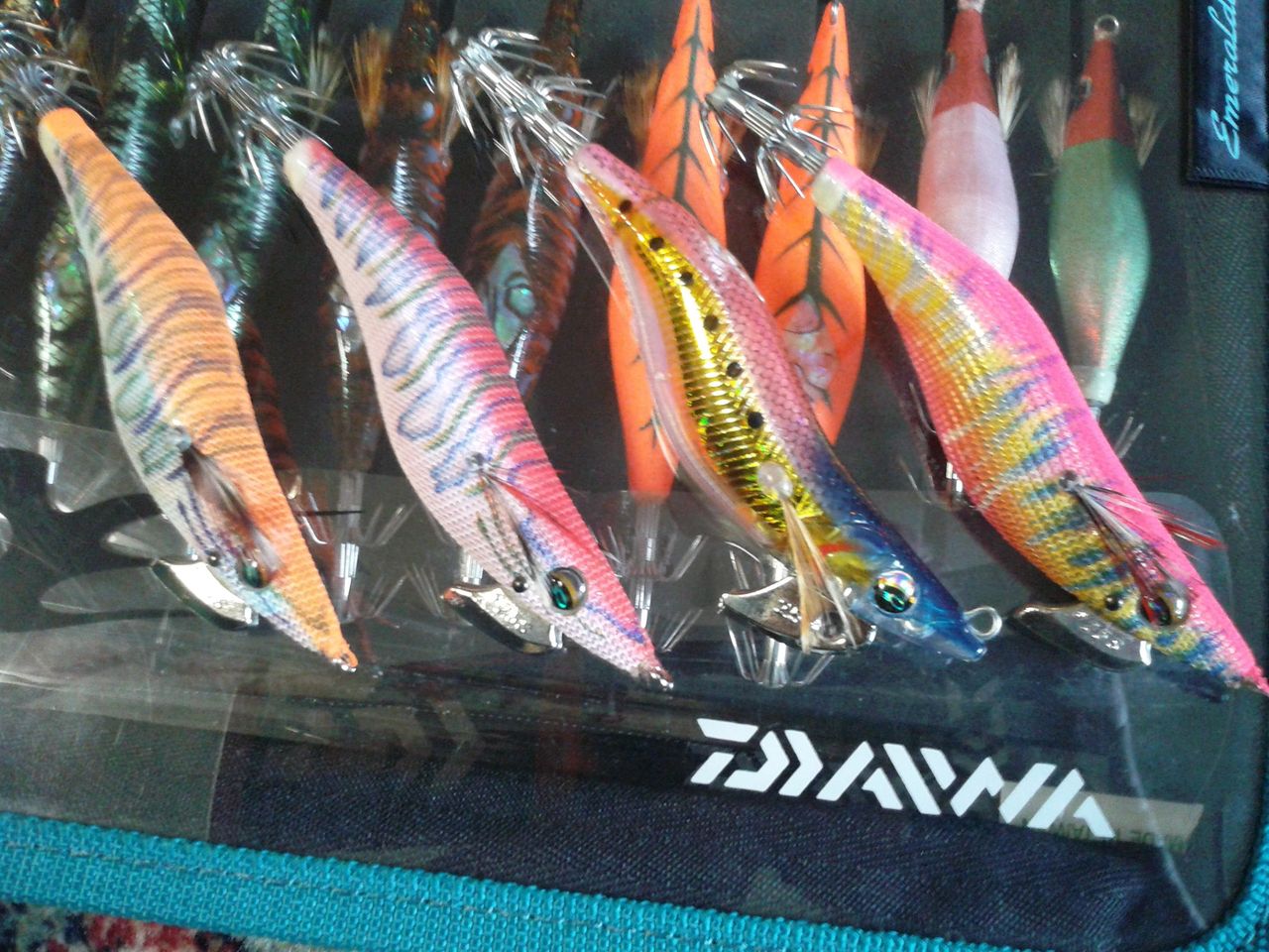 小型ベイトリールにラインはPEライン1号前後、フロロ4号のリーダーを結節し、中オモリ10号、その先に、フロロ3号を1.5m、これはキッチリと計って、2.5号程のエギに、フリーノットで結ぶといったシンプルな仕掛けです。