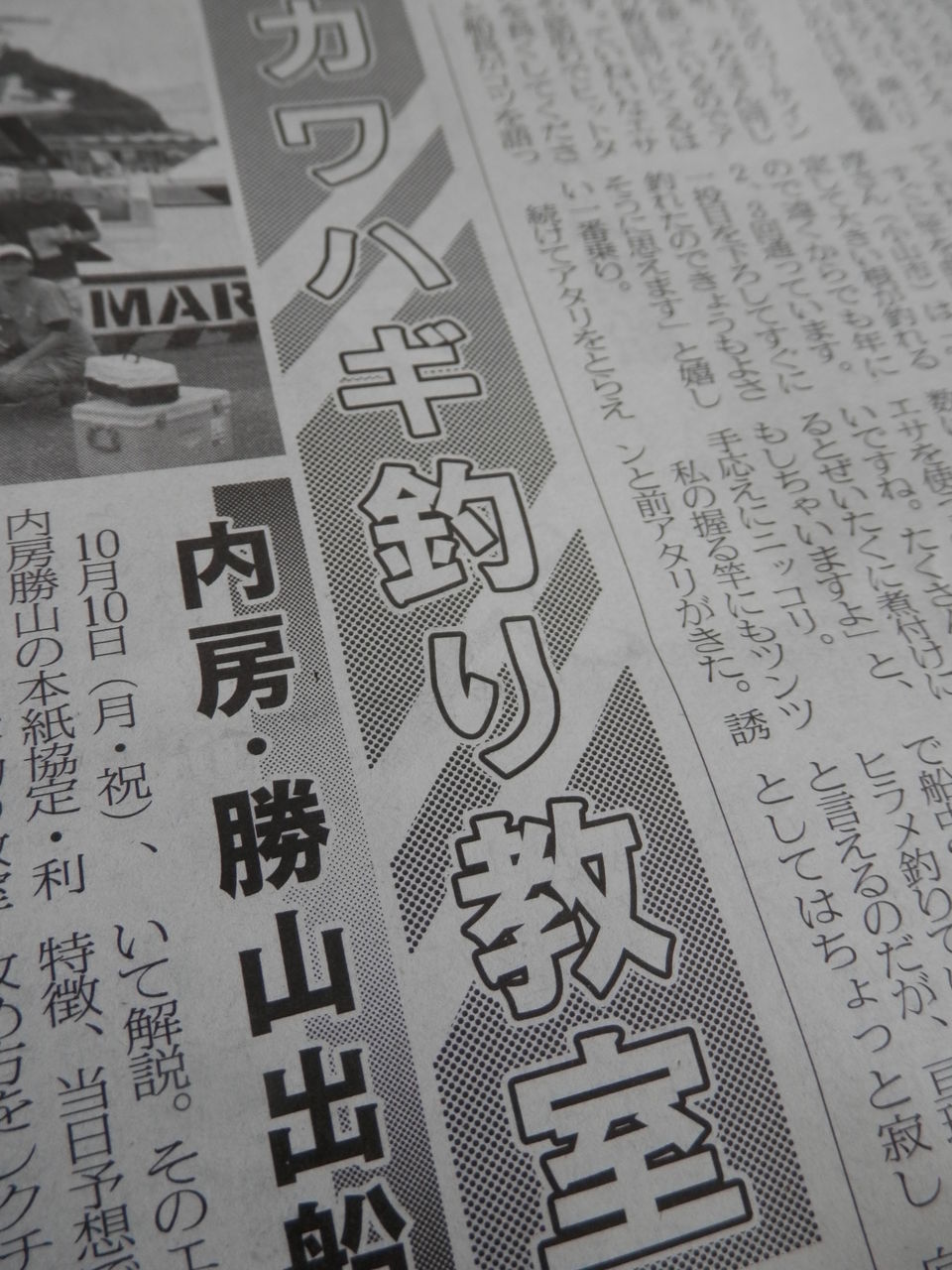 10月17日発売の、週刊つりニュース誌に、10日に勝山の利八丸さんにて開催させていただいた、勝山沖のカワハギ釣り教室の模様の記事を書かせていただき、掲載されています。