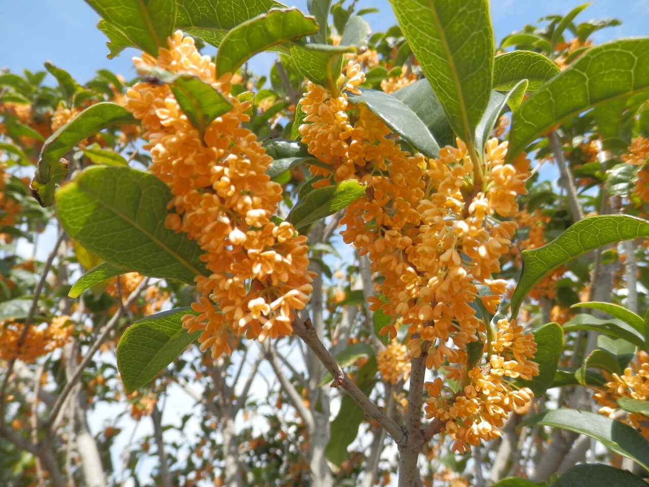 秋空に、胸のすくような匂いを振りまいている金木犀。