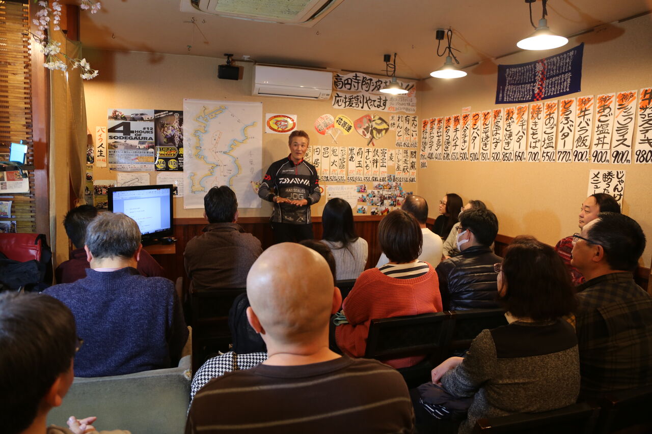 親睦会では仕掛け作りや講習会についてのご質問などもお受けしながら、そここで釣り談義に花が咲きます。