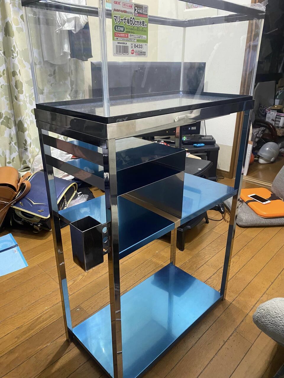 成長の早いカメの事、既にその次のサイズの水槽が用意してあり、その寸法は60㎝×30㎝と大きいのです。