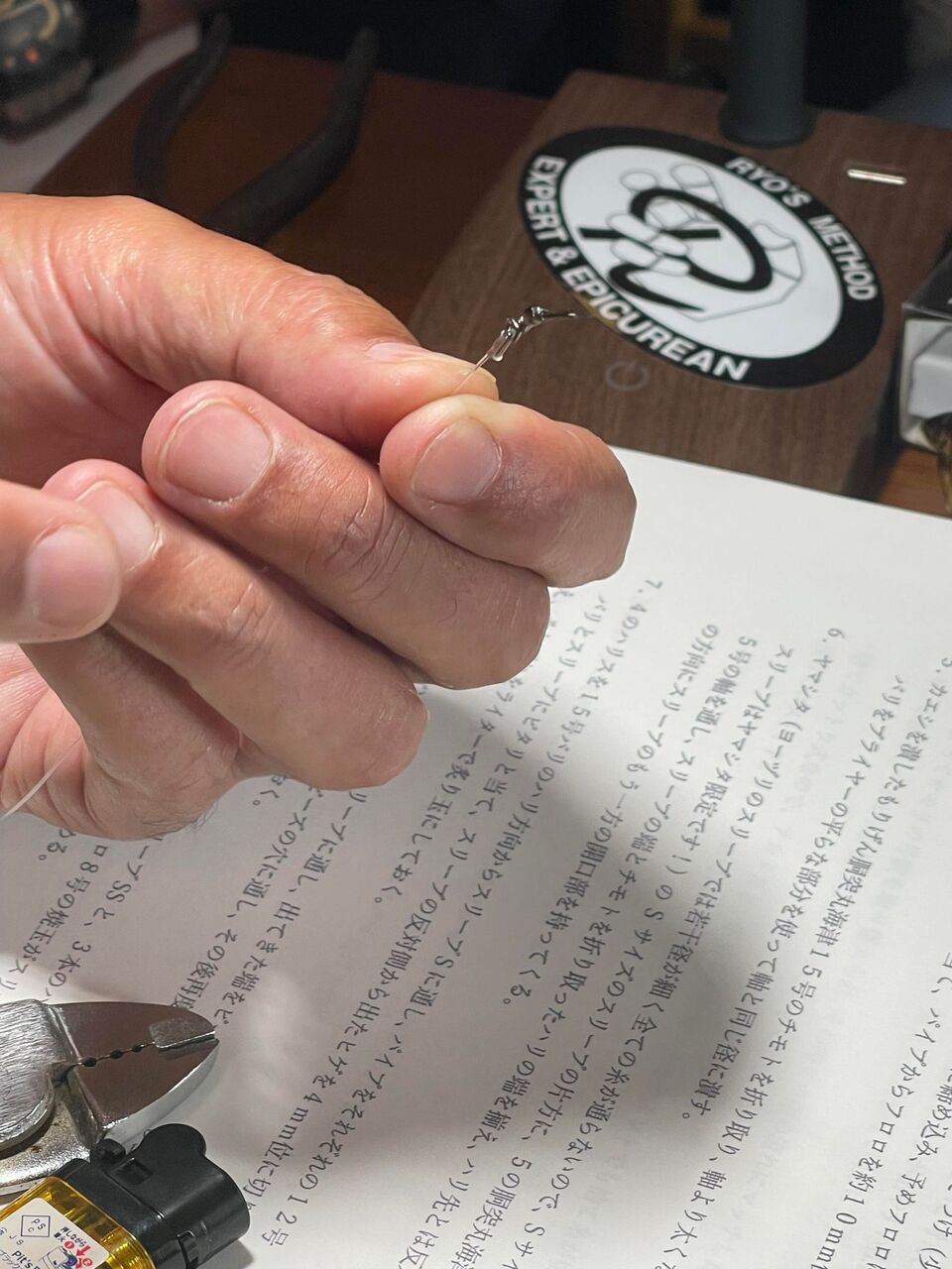 今回はチラシバリ仕掛けである RYO'S METHOD 湾フグ仕掛け作りですので先ず、「なぜフグ釣りはカットウ仕掛けなのか?」から、従来の親バリからチラシバリに至った経緯などをお話しさせていただきました。