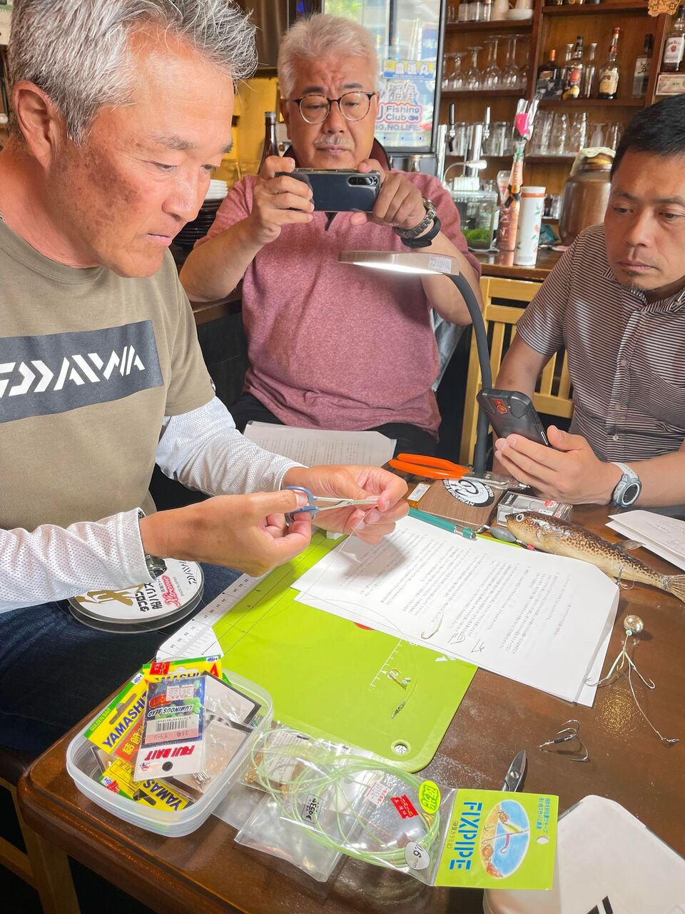 湾フグ仕掛け作り教室を、釣り師が集う遊飯家 酒舞さんにて開催させていただきました。
