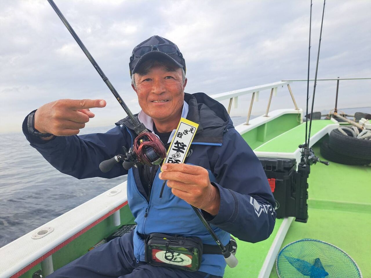 お隣の釣り座の安藤さん、大会では僕が検量を担当させていただいた3号船に乗船され、船中トップ枚数でした。