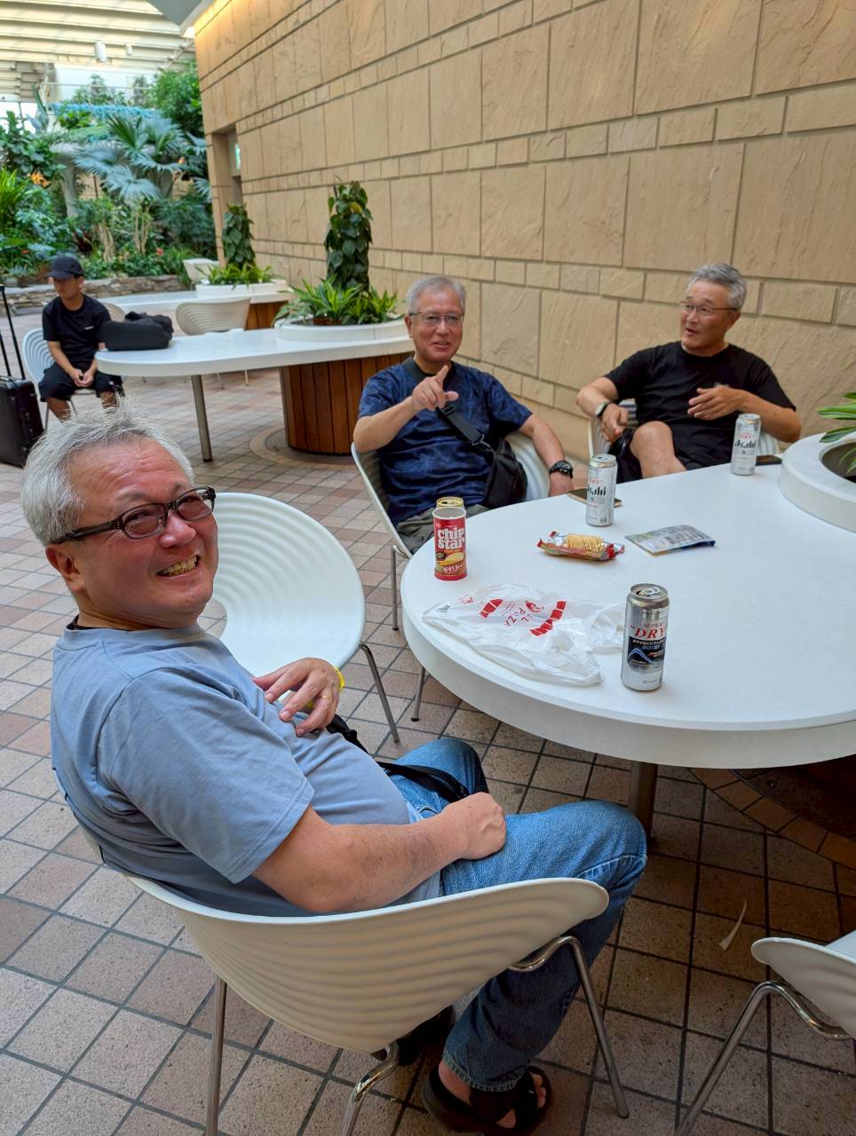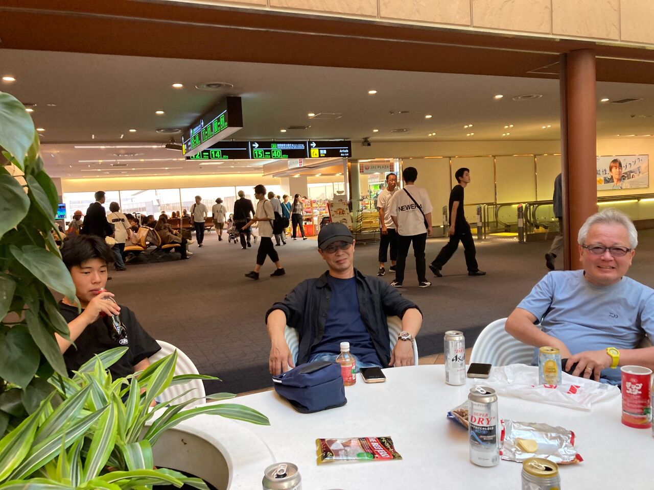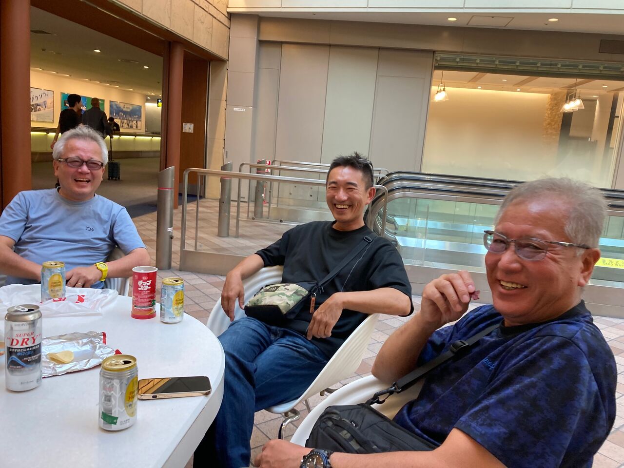 ロッドケース、船バッグ、着替えなどの荷物があるので空港までは車で移動、待ち時間に打ち合わせ兼リラックスタイム、これも楽しい時間でした。