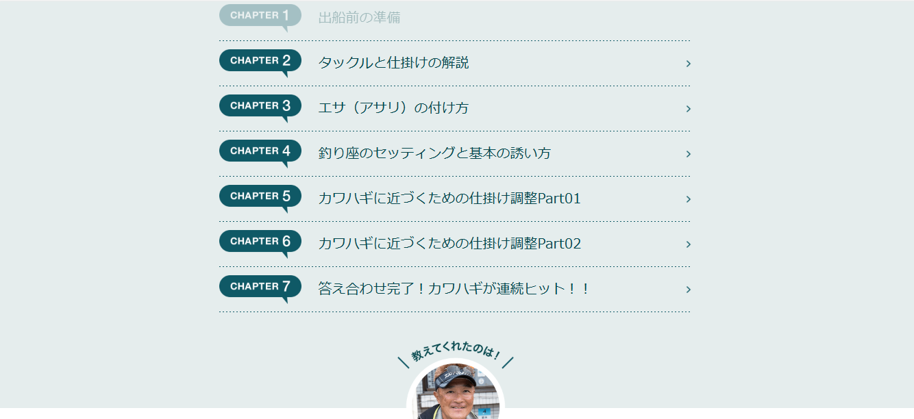 もう8年前の公開になりますが、1から7までのチャプターで構成され、カワハギ釣りを始めようと思っている方も十分ご覧いただけます。