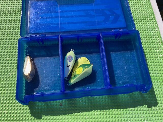 このケースにオモリがパンパンに、そう・・・、15個以上は入っていましたが、沖上がり時はこの状態で下(苦笑)