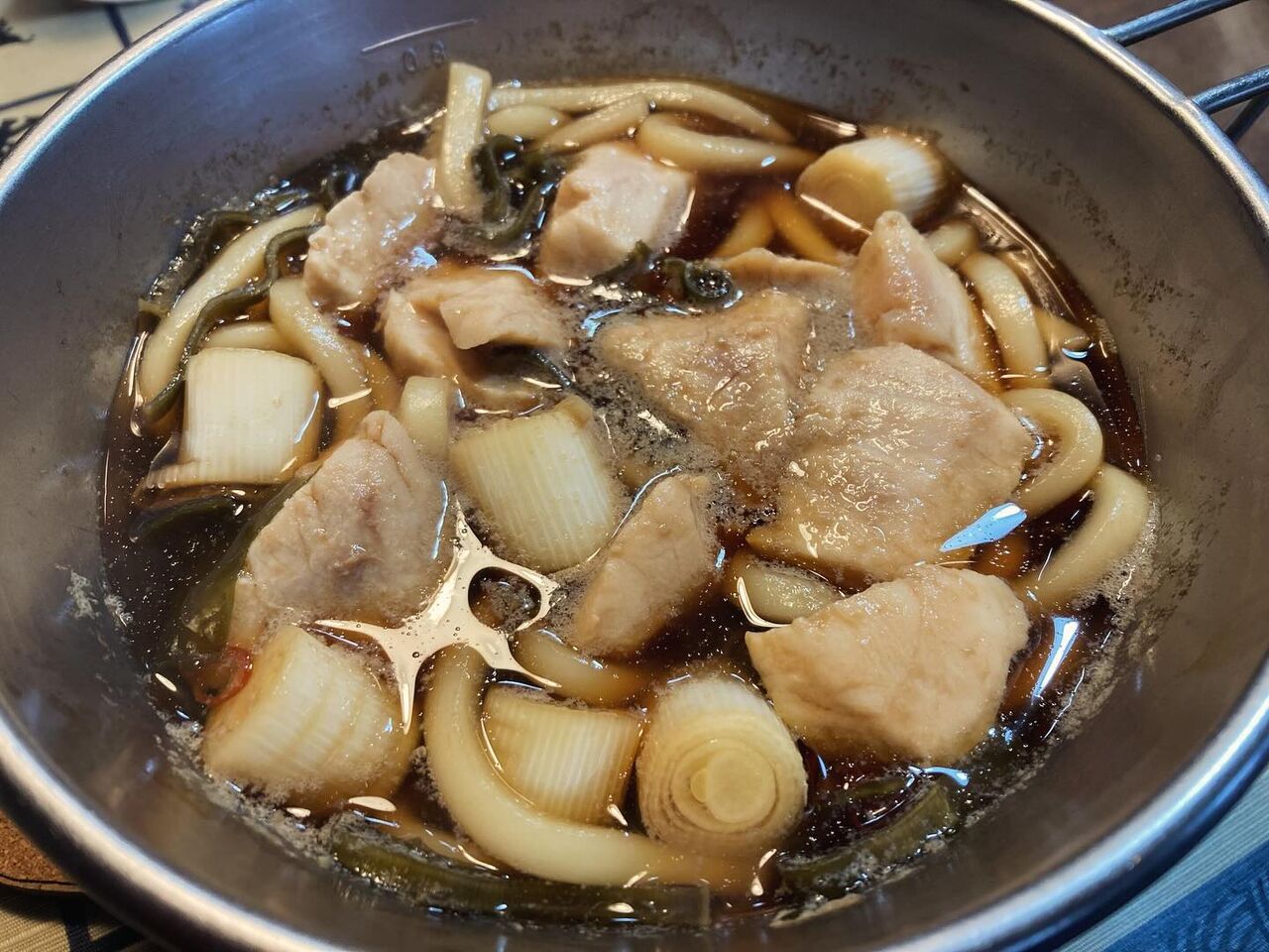 その夜の〆にその美味しいたまごを入れたうどんもこの鍋で作りました!