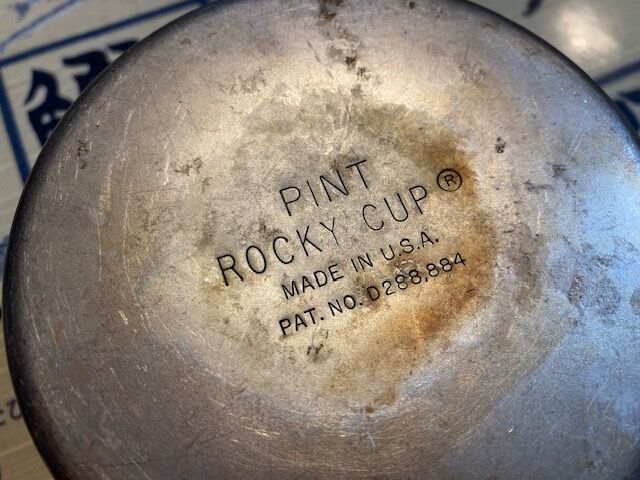 このカップの裏には「PINT ROCKY CUP」と刻印してあり、パイントとは1/8ガロンのことで、1ガロンは約3.785リットルですので1パイントは約473ミリリットルということになります。