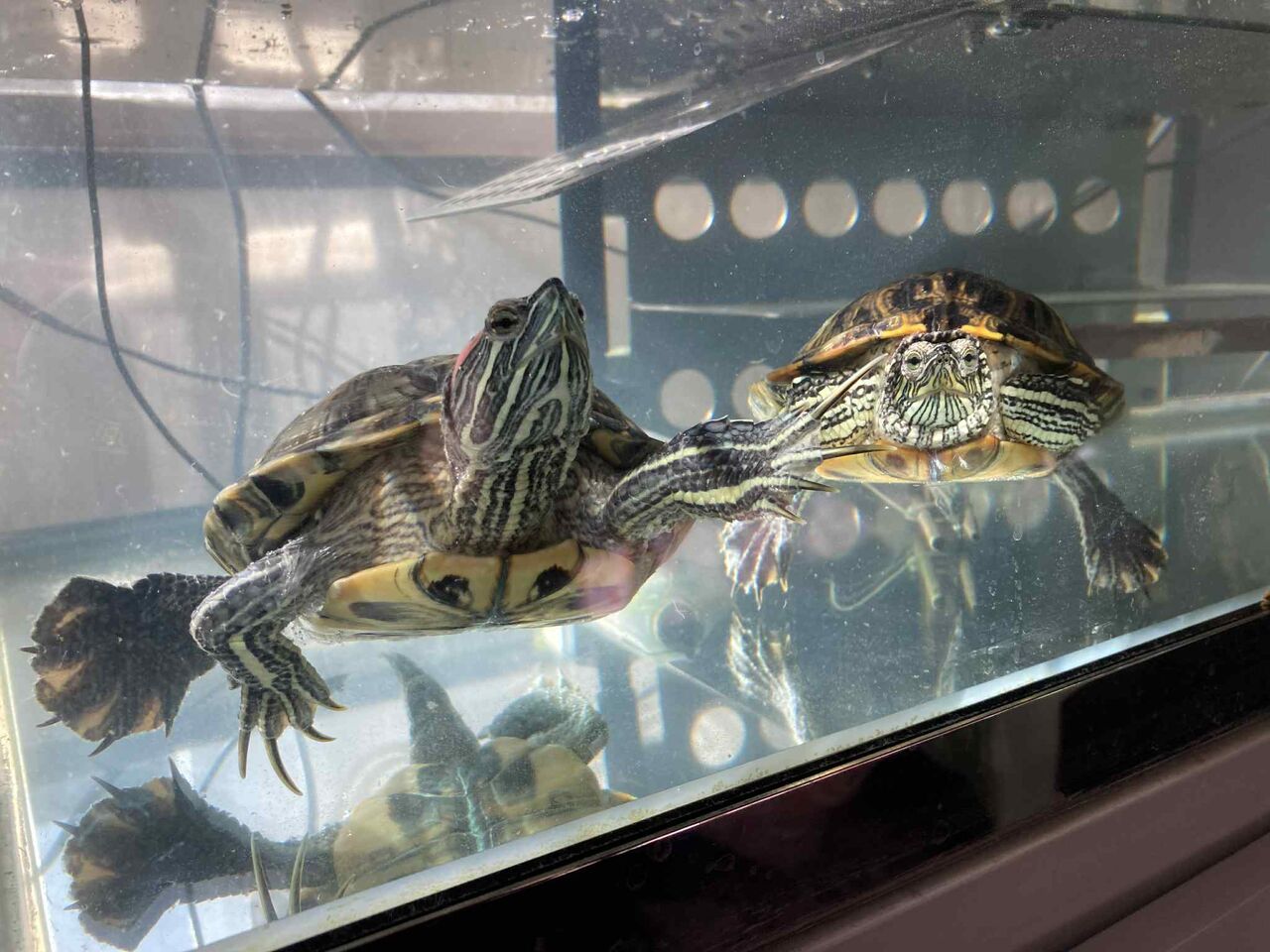 横にあるカメの水槽からは・・・