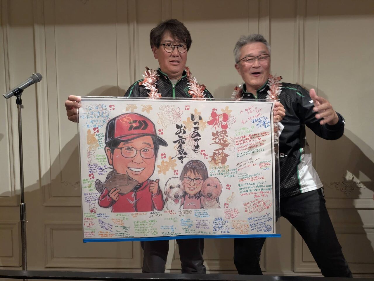 17時に釣りフェスは終了、この日はその後、DAIWAテスター懇親会、極鋭カワハギ友の会の懇親新年会に出席させていただきました。