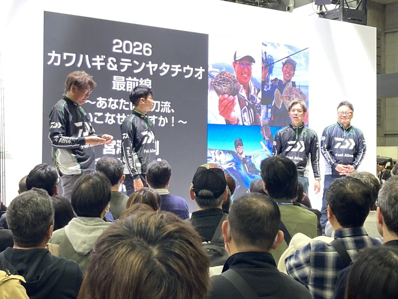 今年の釣りフェスは1月16日~18日の3日間で、その2日目、17日の午後よりダイワ船ブースに立たせていただきました。
