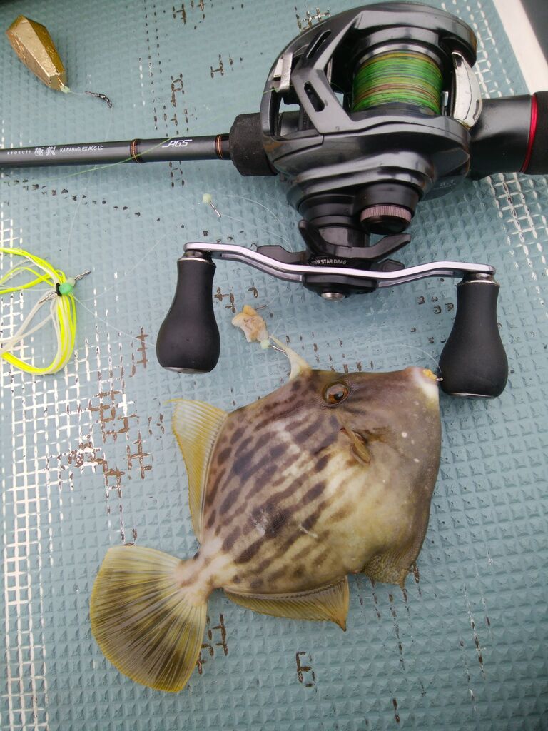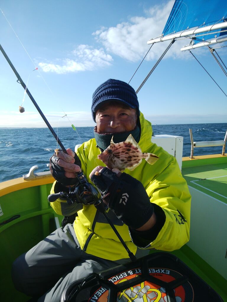 早速艫寄りでヒット、アタリのインターバルは長いようですが、カワハギの気配がある出だしでした。
